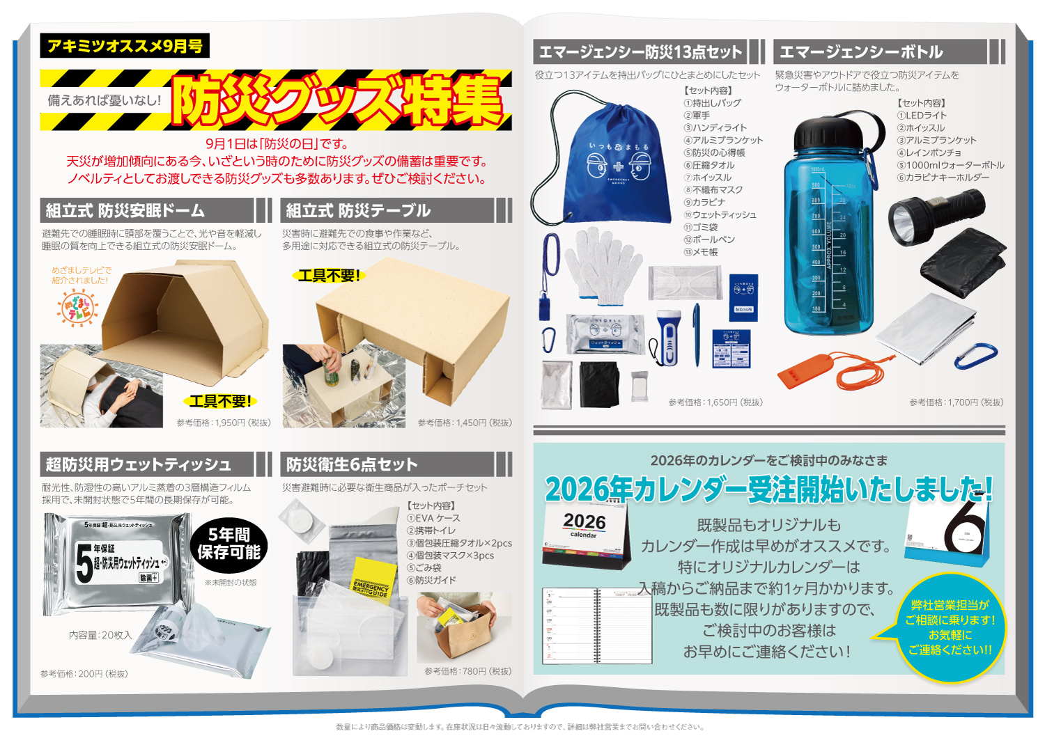 また、1年間ずっと会社名をアピールできる最強のノベルティ、2026年カレンダーもまだ受け付けております。